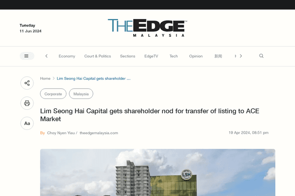 Lim Seong Hai Capital Bhd (LSH Capital) has obtained approval from its shareholders to transfer the group’s listing from the LEAP Market to the ACE Market of Bursa Malaysia Securities Bhd